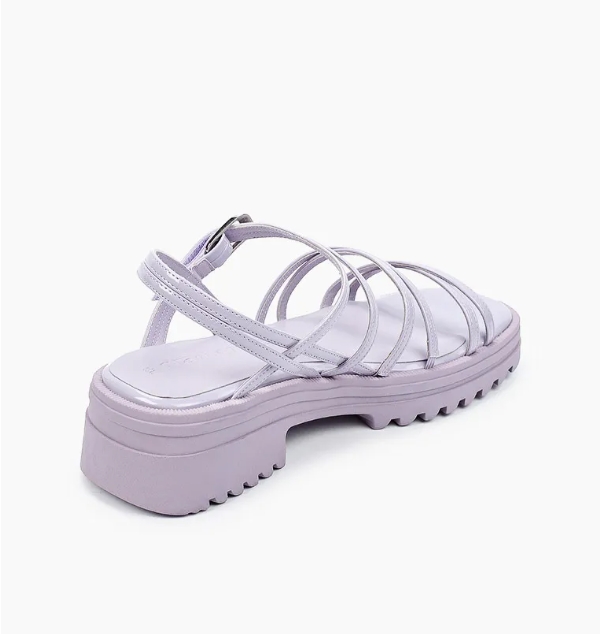 ● Features: A soft tubular double banded strap, elastic leather covered slingback stay and cushioned flatform footbed makes light purple sandals equally comfortable and cool.